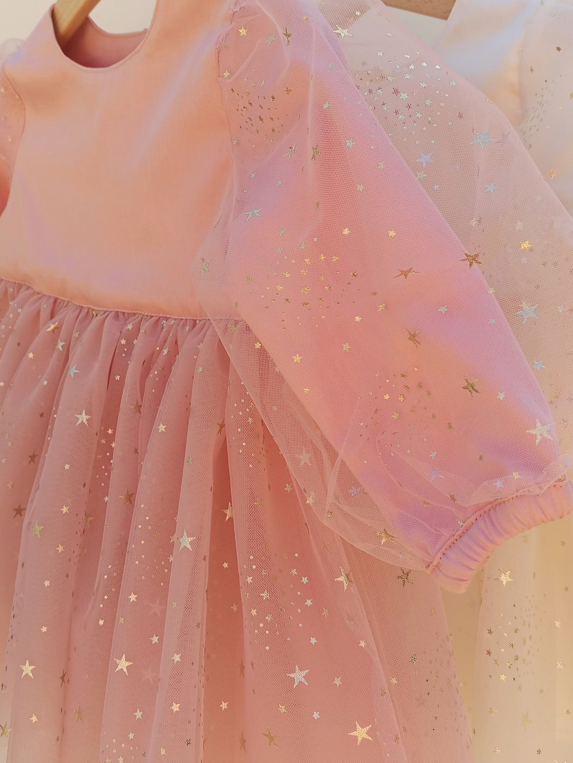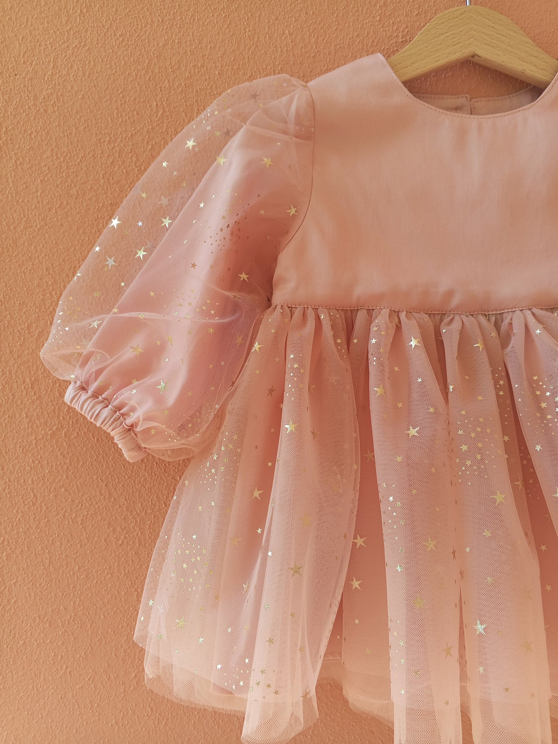 Gold yıldız baskılı tül kullanılmıştır.