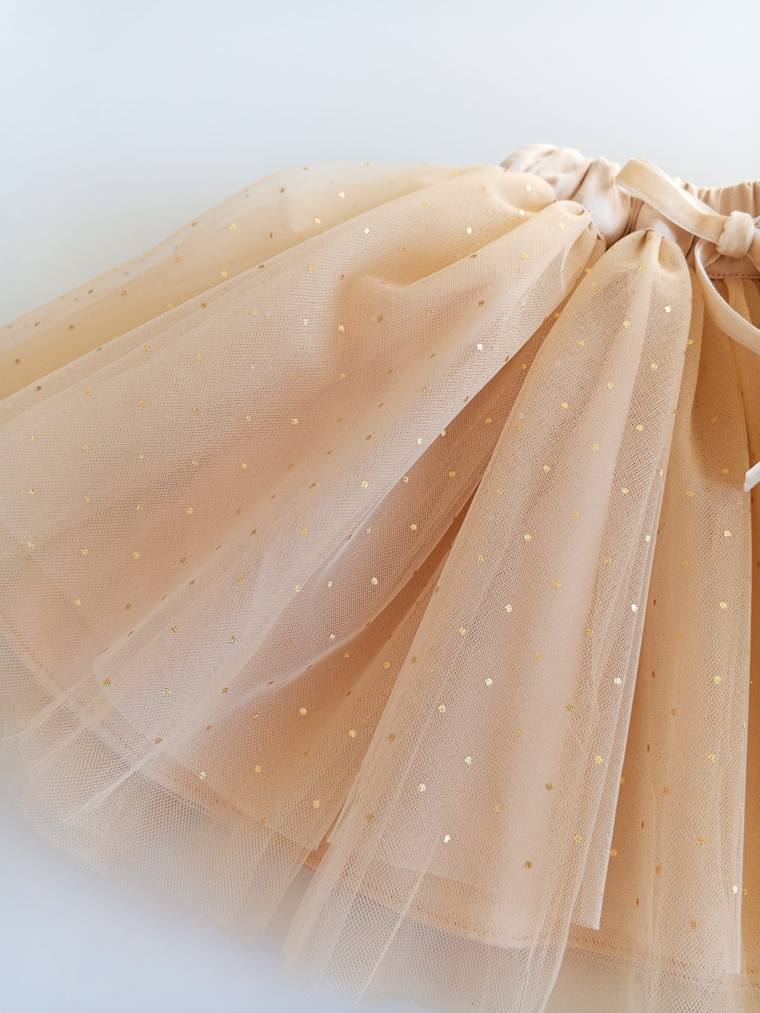 %100 pamuk saten ve gold puantiye baskılı tül kumaşlardan üretilmiştir.